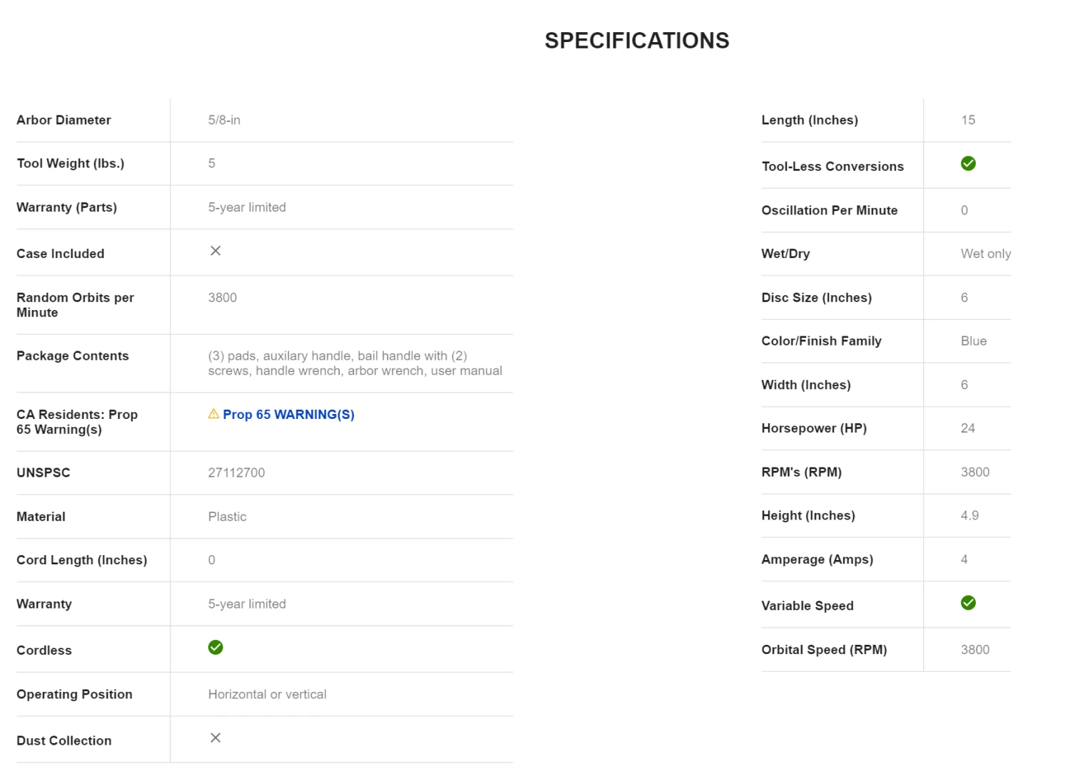 - Polish a full size car with (1) 4.0Ah battery (sold separately)