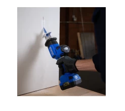 This Kobalt KRS 124B-03 24-volt reciprocating saw features a lightweight design that leaves one hand free, making it the ideal tool for a wide range of applications.