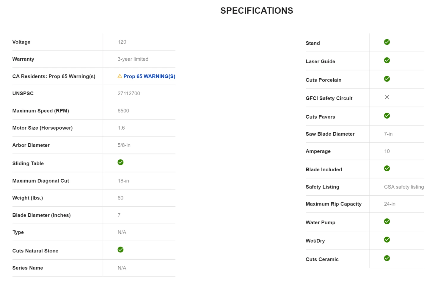 - 10-Amp motor generates up to 6,500-RPM to easily cut ceramic, porcelain, natural stone, pavers and a variety of tile