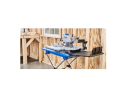 Kobalt KWS S72-06 7-In sliding tile saw is designed to rip cut 24-inch tiles and diagonally cut 18-inch tiles with a 2-1/4-in max depth of cut.
