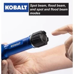 - Kobalt flashlight provides 600 lumens of super-bright LED light
